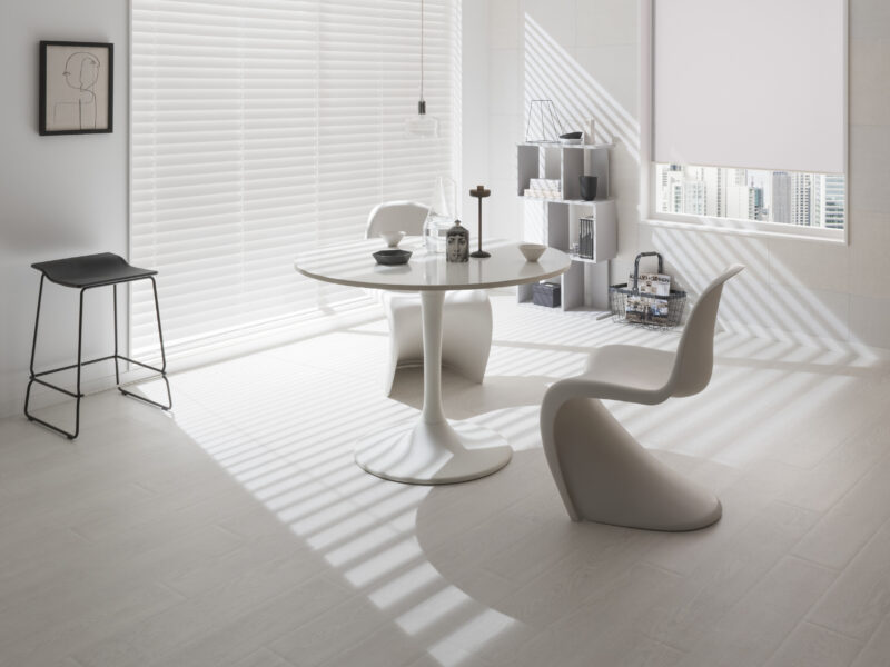 時間帯設定をし、ライティングで光量を調節しながら、ブラインド、ロールスクリーンの最大の魅力ポイントを探しながら撮影した。
